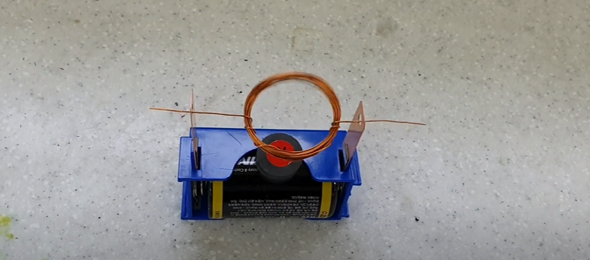 구리선만 있으면 바로 만들 수 있다. 네오디움 자석에 자석에 극을 표시해 주어야 자기력 방향을 알 수 있다.
