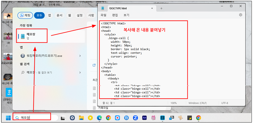 나. chatGPT에서 만들어 준 소스를 복사해서 메모장에 붙여넣기 한다.