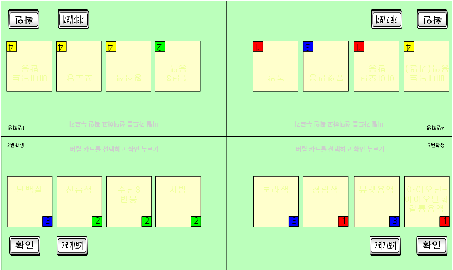 5. 가리기 버튼을 누르면 내가 가지고 있는 카드가 가려져서 다른 학생들이 볼 수 없다. 때로는 가려 뒀다가 내 차례에 살짝 열어서 카드를 확인하고 선택한 다음 다시 가리면서 게임을 진행 하게 할 수 있다. 이건 꼭 규칙을 정하지 않더라도 학생들이 알아서 하게 하면 된다.