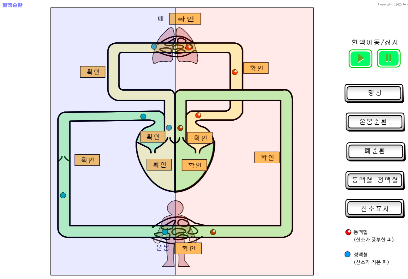혈액순환을 설명하기 위해 만든 가상실험 프로그램이다.