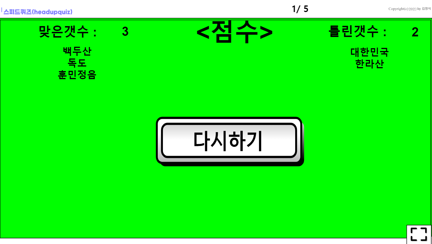웹 스피드 퀴즈1.5 - 반 전체를 대상으로 할 수 있음(회원가입 필요없음)