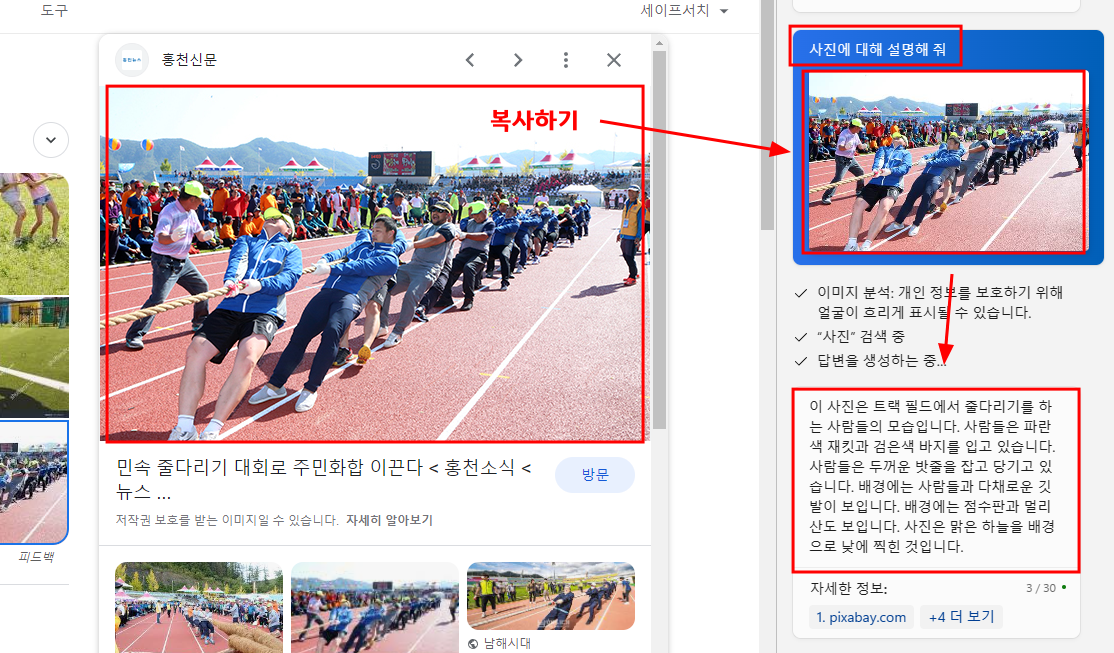 사진을 올리고 질문을 하면 사진에 대한 분석도 해 준다. 사진에 대해 설명해