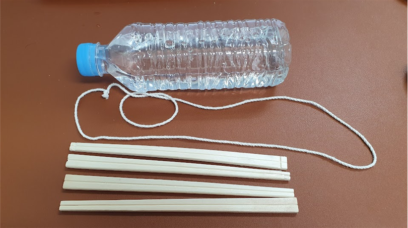 준비물 : 나무젓가락 4개, 실 1m, 물병 1개,
