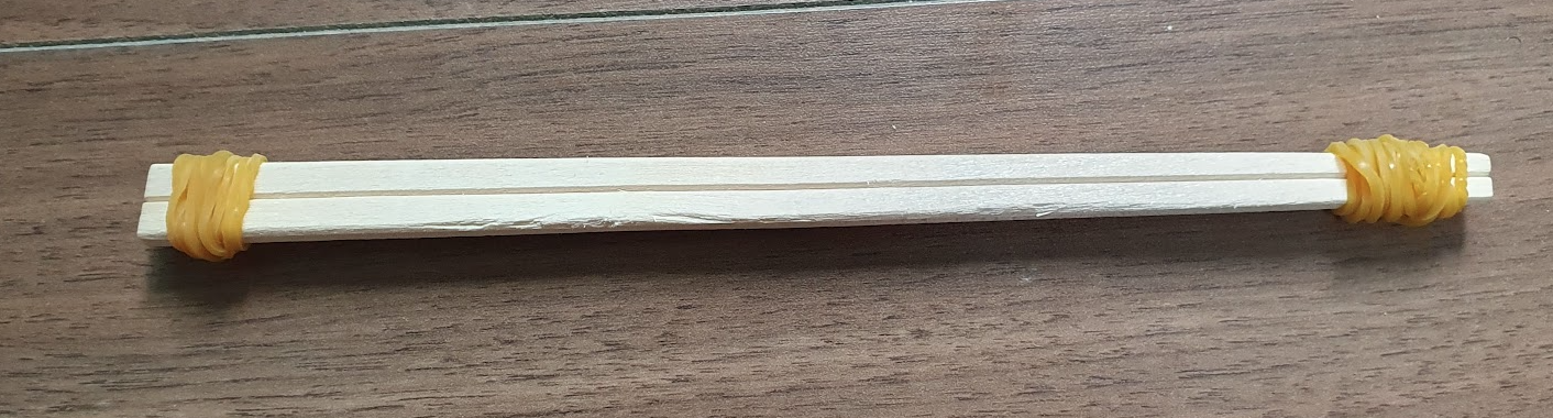 - 칼로 홈을 파는 것이 위험하다. 그래서 홈을 파는 대신 고무줄을 나무젓가락 양쪽 끝에 단단하게 감아서 미끄러지지 않게 하는 걸 권장한다.