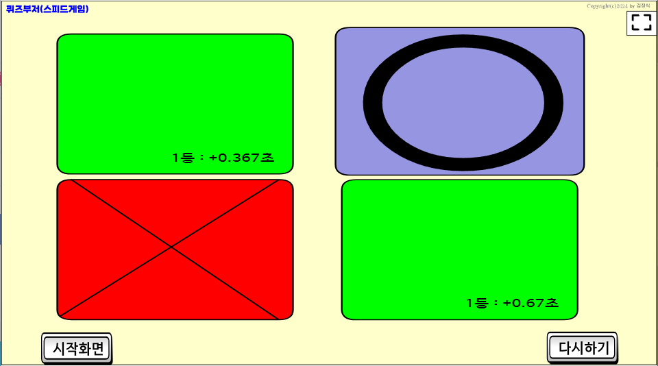문제는 따로 내지 않는다. 화면변화를 감지해서 누가 더 빨리 누르는지를 경쟁한다.