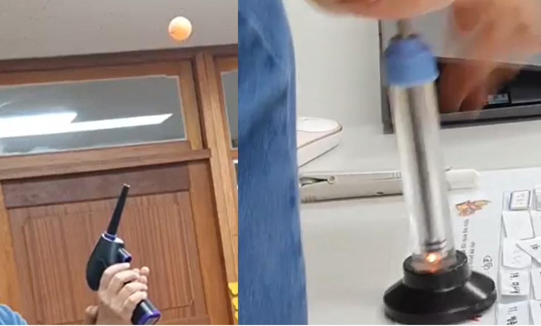 아래 영상에서 탁구공이 떠 있는 것과 비슷한 이유다.
