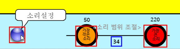 소리설정 버튼을 눌러 소리 측정 범위를 조절할 수 있습니다.