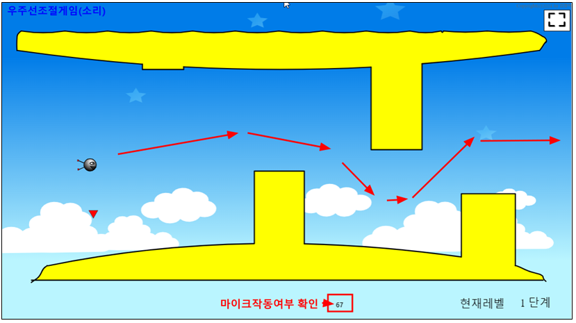 우주선조절게임(소리) - 소리의 성질중 세기(진폭) 설명할 때 사용