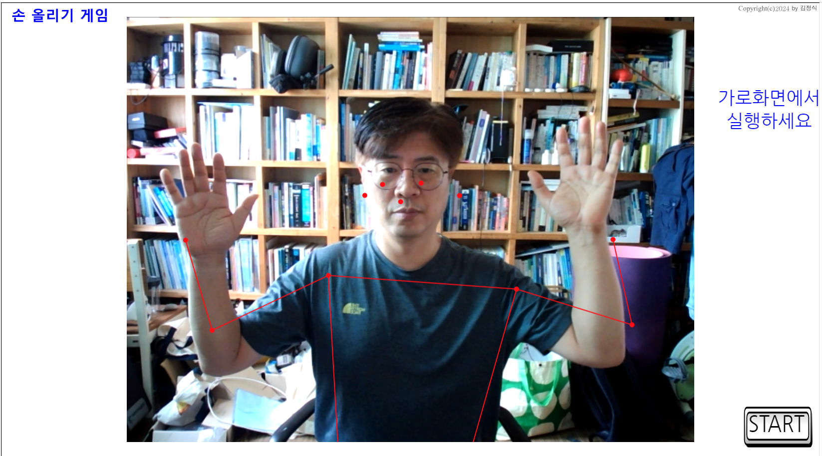 프로그램을 실행시키고 양손을 들었다 놓으면 게임이 시작된다(볼륨 키워 놓고 따라하기 바란다)