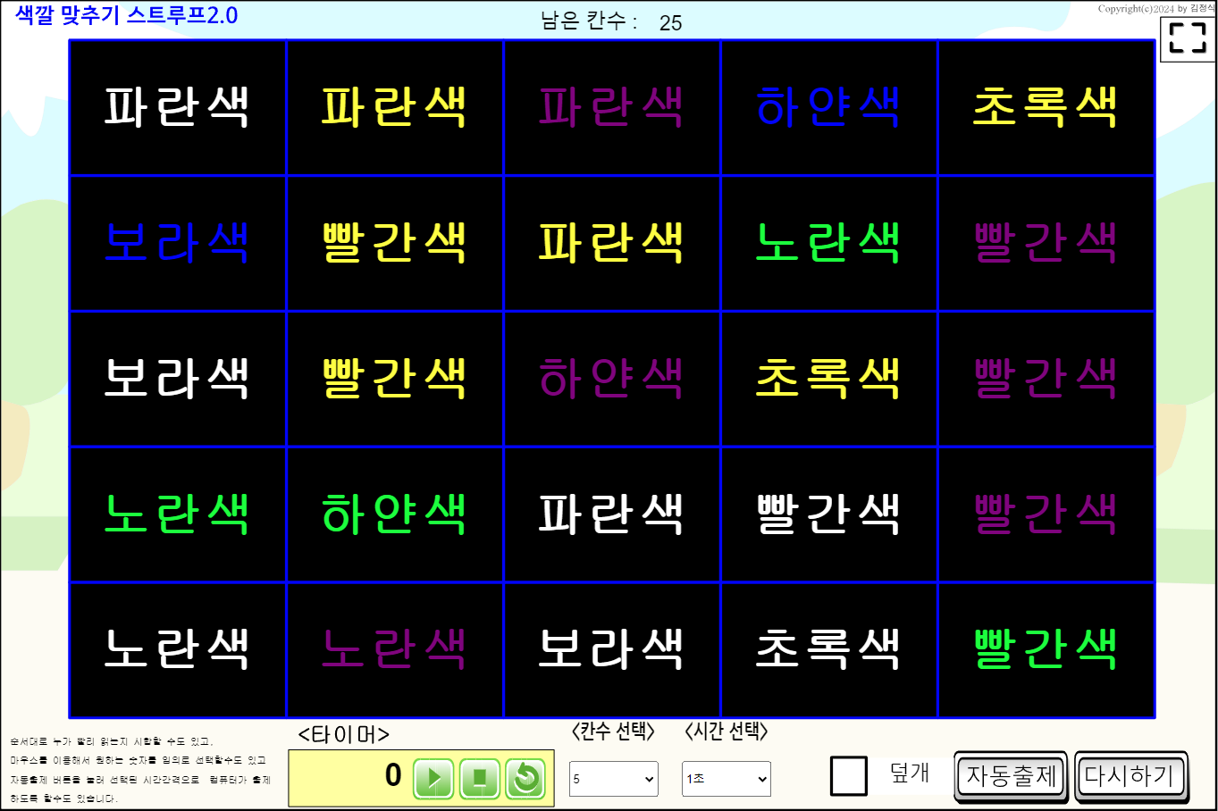 - 쉽고 빠른시간에 하려면 적은 칸수로 난이도를 높이려면 많은 칸수로 바꿔서 실행하면 된다.