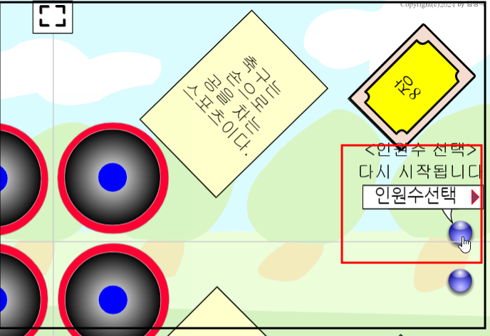 다시하고 싶으면 우측 파란색 인원수 선택 버튼을 눌러 인원수를 선택해 주면 처음부터 다시 시작된다.