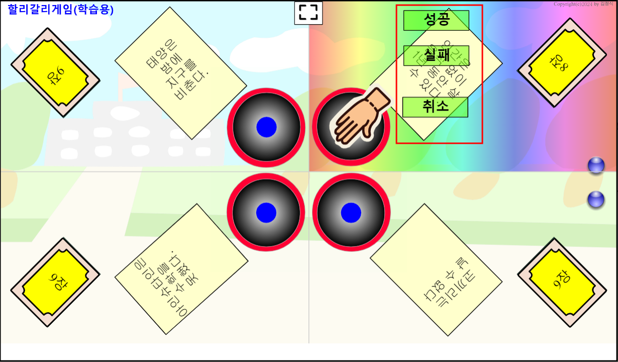 3. 성공 여부는 카드를 누른사람이 누르면 안되는 규칙을 추가해 보자. - 또는 정답여부를 처리해 주는 친구를 정해 보자.