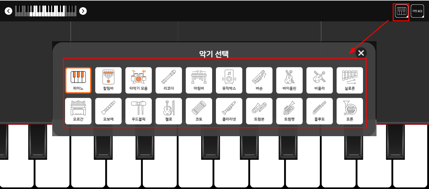 아이스크림에서 만든 피아노를 추천한다. 다양한 악기로 바꿔서 연주가 가능하다.
