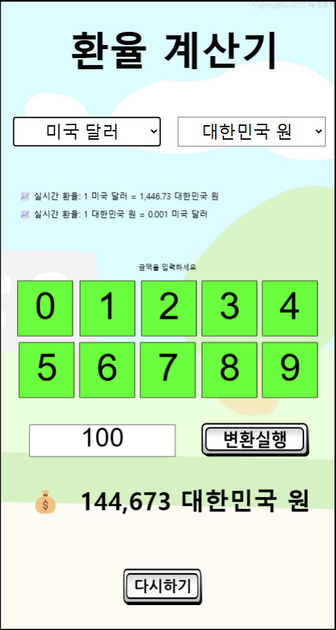 매번 환율을 확인하고 값을 입력하는 것이 너무 불편해서, 해외 여행을 갔다 오자 마자 환율 계산기를 만들었다.