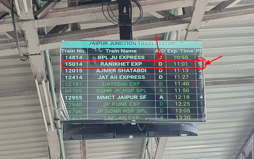 (우리가 타려던 15014 기차 11:05분이 되었는데도 기차가 들어오지 않고 있어서, 또 기차역 부근에서 대기하고 있나 보다 생각하고 있었다. 그런데 어느순간 A 에서 D로 바뀌었다. D로 바뀌면 출발했다는 뜻이다.)