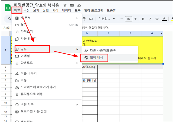 4. 게시기간이 끝나면 구글스프레드시트 웹게시를 취소하면 된다.