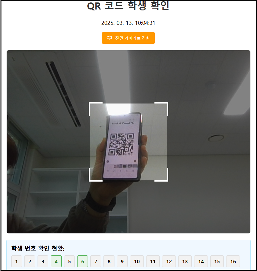 - 확인이 되면 바로 아래 학생 번호 확인 현황에 해당학생 번호가 바뀐다