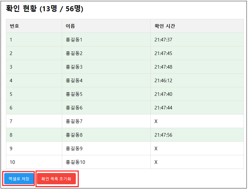 3. 확인 현황에서 학생 확인 시간을 확인할 수 있다.