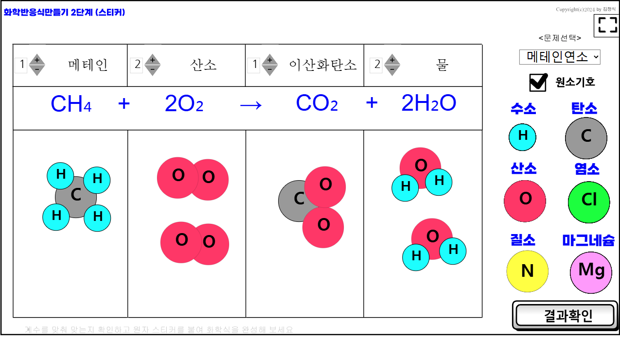 이번에는 2단계 난이도가 높은 4개짜리 화학반응식을 추가로 만들어 보았다.