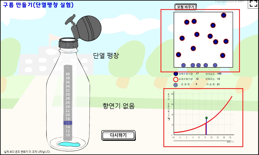 2. 병안에 미리 물을 넣어 두고, 단열 압축을 시키면 살짝 실제 수증기량이 증가할 수 있다.