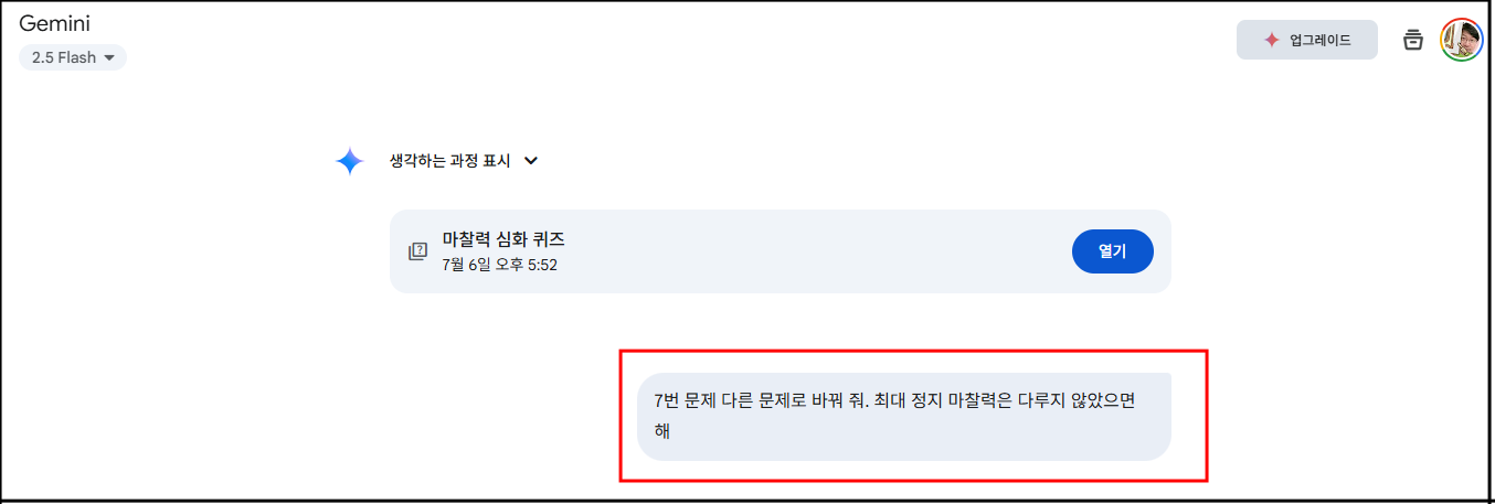 만약 문제가 마음에 안들면 그 문제만 찍어서 수정해 달라고 하면 된다.