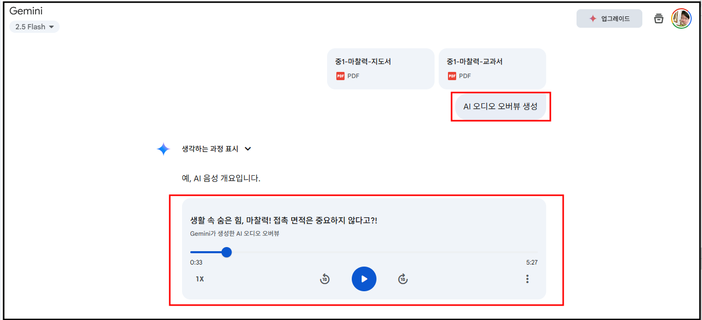노트북LM 에서 지원하던 팟캐스트(심층대화) 기능이 구글 제미나이에 기본으로 들어 왔다.