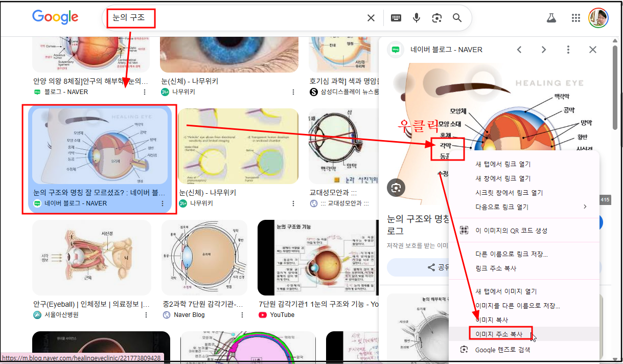 이때 그림위에서 마우스 오른쪽을 클릭하고 이미지 주소 복사를 한 후, 만들기 프로그램 이미지 주소에 붙여넣기 하면 된다.