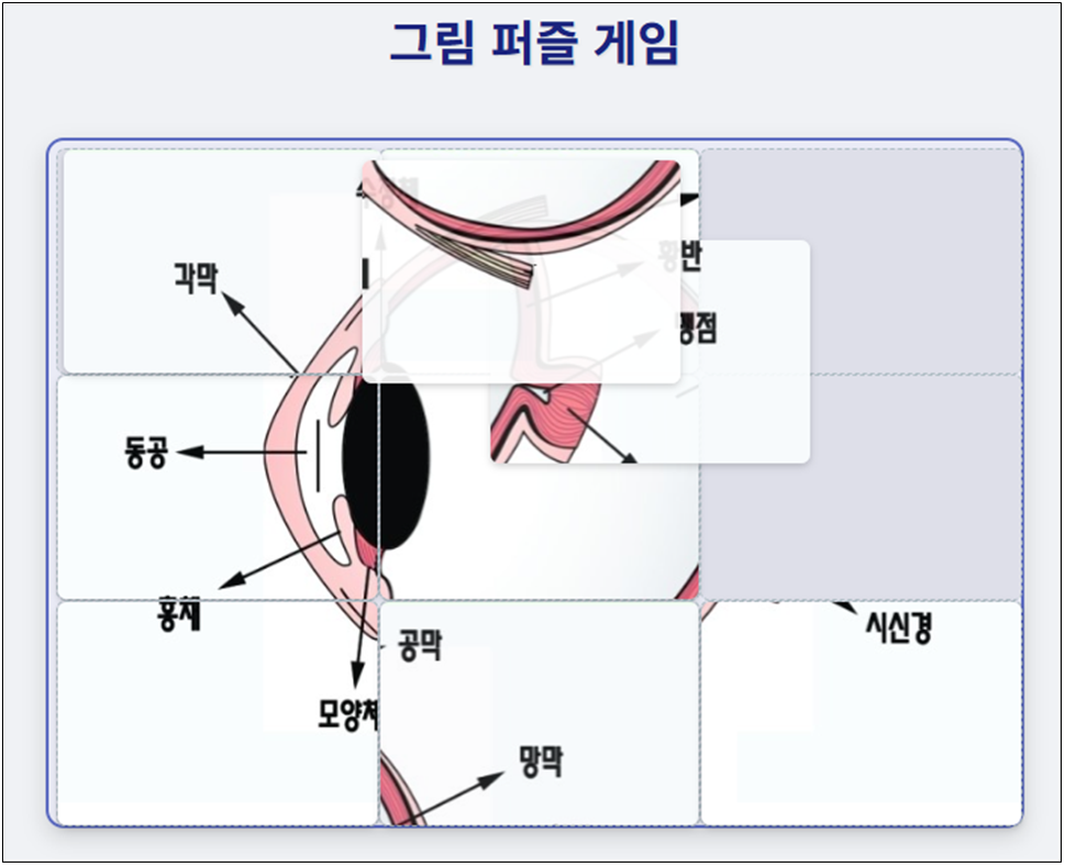 눈의 구조를 맞춰 보는 퍼즐이다.