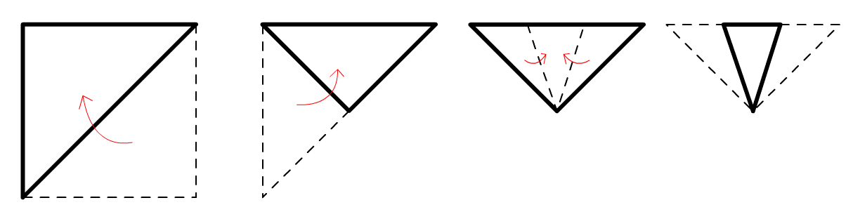 그걸 토대로 종이를 4번 접어서 삼각형으로 만든 다음