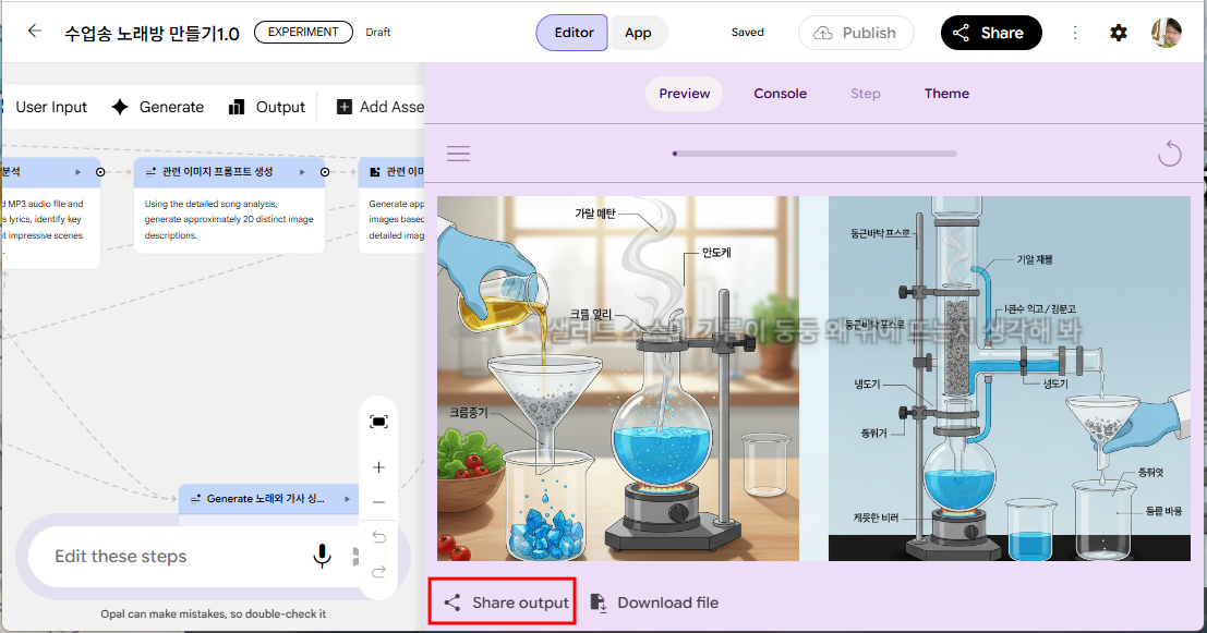 구글에서 만든 opal 을 이용하면 자동으로 수업송 노래방을 만드는 앱을 제작 할 수 있다.