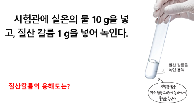 그럼 많은 학생들이 실온에서 질산칼륨의 용해도는 10 이라고 이야기 한다.