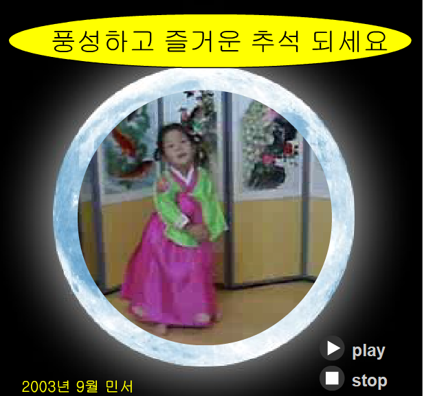 잡동사니/민서네가족 즐거운 추석 되세요 - 민서 절 by 민서아빠(과학사랑) 2013. 1. 10. 2003년 만든 김민서 추석 카드? 200409cho.swf 다운로드 공유하기 게시글 관리 김정식 허명성의 과학사랑 관련글 2006년 새해 복 많이 받으세요 2005 새해 복 많이 받으세요 민서 할아버지가 출연한 TV프로 부발중학교 3회 졸업식날 받은 값진 선물