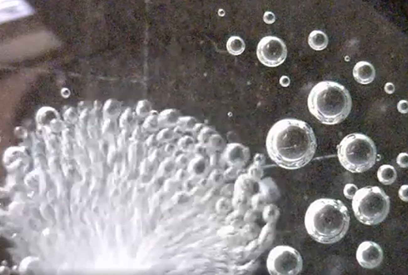 디지털 확대경으로 아주 작은 방해석 조각이 묽은 염산에 녹아 사라지는 장면을 동영상으로 잡았습니다