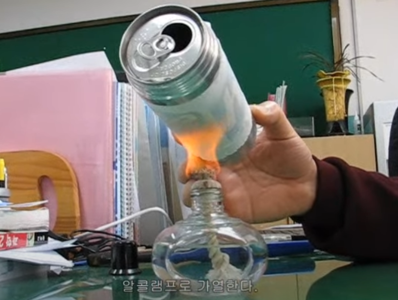 단 캔 속에 물이 들어있어야 한다. 빈 캔으로 하게 되면 캔의 온도가 높아져 결국은 타게 된다.