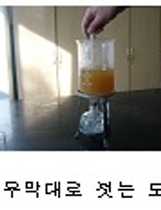 과학관련자료/과학탐구자료176 빨대손가락 만들기(탐구실험) 이천중학교 과학교육선도학교에서 재미있는 과학수업을 위해 2010년에 개발한 자료 입니다. 2013. 6. 26. 대형 종이테이프를 이용한 속력실험분석 이천중학교 과학교육선도학교에서 재미있는 과학수업을 위해 2010년에 개발한 자료 입니다. 2013. 6. 24. 흑백필름이용 광합성 사진만들기 이천중학교 과학교육선도학교에서 재미있는 과학수업을 위해 2010년에 개발한 자료 입니다. 목적 흑백필름을 나뭇잎에 붙이고 광합성을 시켜 광합성 결과물을 이용해 잎에 사진을 인화시킨다. 실험준비 1. 관련단원 : 중학교 1학년 6단원 식물의 영양 2. 준 비 물 : 흑백필름 또는 흑백필름이 인쇄된 OHP필름, 살아있는 식물잎, 스카치테이프, 알코올램프, 에탄올, 삼발이, 비이커, 샬레, 아이오딘-아이오딘화칼륨용액, 3. 구입방법 : 자체제작 4. 소요경비 : 100원 정도 실험방법 1. 흑백필름 또는 OHP 필름에 출력된 음영이 바뀐 사진을 준비한다. 2. 준비된 흑백필름을 식물잎에 붙인다. - 가능한 잎이 넓은 쌍떡잎식물에 붙인다. 3. 하루에서 이틀 정도 그대로 둔다. 4. 오후 3시경 흑백필름이 붙은.. 2013. 6. 24. 진공실험장치를 이용한 실험(보일의 법칙, 기압) 이천중학교 과학교육선도학교에서 재미있는 과학수업을 위해 2010년에 개발한 자료 입니다. 2013. 6. 24. 액체 이산화탄소 만들기 UCC원고 이천중학교 과학교육선도학교에서 재미있는 과학수업을 위해 2010년에 개발한 자료 입니다. 2013. 6. 24. 알콜과 물의 혼합용액을 이용해 손가락에 불 붙이기 메탄올과 물을 1:1로 섞은 용액을 준비한다.비율이 조금 달라져도 상관은 없다.(지금은 에탄올로 하셔야 합니다. 메탄올은 실험실에서 사용하지 않아요)위험할 수 있으므로 혼합용액은 손가락이 담길 정도로 조금만 준비하고옆에 소화기와 물이담긴 수조(단 알콜에 불이 붙었을때 물로 끄면 위험하다)를 준비하면 좋다.물이담긴 수조는 손가락이 뜨거울때 손가락을 담가 식히기 위해 준비한 것이다. 혼합용액에 화장지나, A4용지를 담갔다가 불을 붙여보자.불은 붙지만 화장지나 A4용지는 타지 않는다.이번에는 손가락에 불을 붙여 보자.맨 손가락에도 가능은 하지만 사실 뜨겁다. 또 맨손으로 하면 용액을 머금고 있지 못하므로잘 보이지 않는다.그래서 장갑을 끼기로 했다.(팁 : 장갑을 낄 때 불을 붙일 손가락은 장갑을 조금 헐렁하게.. 2013. 6. 24. 야광양초 만들기 축광가루를 이용한 야광양초 만들기 과학선생님들이 함께 아이디어를 내다가 본교 손은경 선생님이 생각해낸 아이디어 입니다. 인터넷으로 찾아 봤는데, 아직 국내에서는 만든적이 없는것 같네요 2학기때 과학축제때 가지고 나갈 예정입니다. 기존의 양초만드는 방법에 축광가루를 넣어 양초를 만들어 보았습니다. 생각보다 어두운 곳에서 잘 보이는게 좋습니다. 단 축광가루와 액체파라핀을 섞을때 잘 저어 주어야 합니다. 젓는 것을 너무 빨리 끝내면 축광가루가 아래쪽에만 가라않게 되고 젓는 것을 너무 오래 저으면 초가 예쁘게 만들어지지 않습니다. 약간 굳으려고 하는 느낌이 나기 바로 직전까지 저어 주시면 됩니다. 만들어간 학생들도 아주 좋아한답니다. 시온잉크를 넣어서 양초를 만들어 보았는데, 시온잉크는 파라핀과 섞이지 않아 실.. 2013. 6. 24. 교내 로봇과학 경진대회 경진모습 교내 로봇 과학 경진대회를 동영상으로 촬영해 보았습니다 . 2013. 6. 24. 자전거 바퀴로 자이로 휠 만들기 교구사에서 판매되는 자이로휠 가격이 20만원대가 넘어가네요 그래서 학교에서 쉽게 자전거바퀴를 이용해서 자이로 휠 만드는 방법을 소개합니다. 만드는 방법은 아주 간단합니다. 고장난 자전거 바퀴 1개, 딱풀(대) 2개 자전가 바퀴양쪽 축에 딱풀을 나사 돌리듯 돌려서 꽂아주면 됩니다. 어떻게 만들까 고민하다 우연히 발견했는데요 정말 일부러 딱풀을 손잡이로 만든 것 처럼 딱 맞습니다. 나사 돌리듯 돌려서 넣을때 약간 힘이 들기도 하지만, 다른 도구도 필요없고, 한번 꽂아두면 절대 빠지지도 않습니다. 1. 자전거 바퀴 축이 보입니다. 2. 딱풀(대) 뒤쪽면을 보면 구멍이 있습니다. 3. 자전가 바퀴 축과 딱풀 구멍을 맞추어 줍니다. 4. 나사돌리는 방향으로 딱풀을 열심히 돌려 주면 조금씩 조금씩 들어갑니다. 5... 2013. 6. 24. 2009 이천중 물로켓 대회 영상 - 발사대 설치방법 발사대를 에어펌프를 이용해서 2개 설치하고 중간에 압력계를 달아 압력을 조절할 수 있도록 했습니다. 동영상 중간에 페트병이 압력을 받아 터지는 희귀한 장면(잘못 만들었겠지요. 페트병은 왠만해서는 안터지거든요) 도 촬영 되었습니다. 2013. 6. 24. MBL - 온도와 감각점 본 자료는 2004 - 2008년까지 이천중학교에서 과학선도학교를 운영하면서 개발한 자료입니다. 2013. 6. 24. 방과후 지도자료 - 소눈 해부 본 자료는 2004 - 2008년까지 이천중학교에서 과학선도학교를 운영하면서 개발한 자료입니다. 2013. 6. 24. 방과후 지도자료 - 편광상자 만들기 본 자료는 2004 - 2008년까지 이천중학교에서 과학선도학교를 운영하면서 개발한 자료입니다. 2013. 6. 24. MBL - 소리지도 자료 본 자료는 2004 - 2008년까지 이천중학교에서 과학선도학