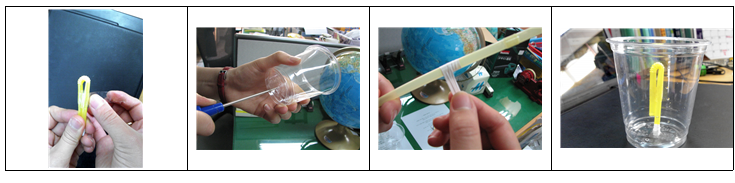 컵, 굽어지는 빨대, 송곳, 셀로판테이프, 실링테이프