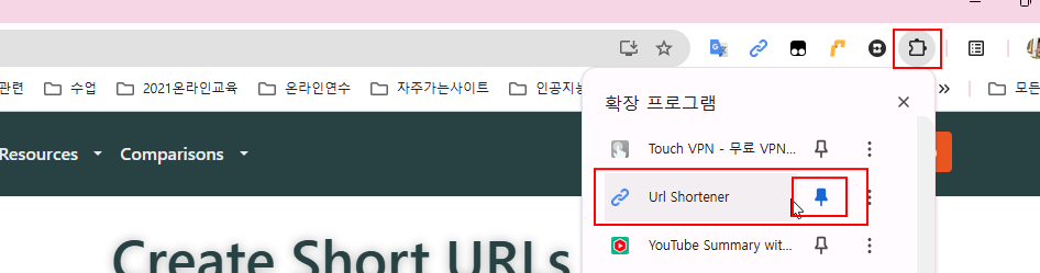크롬 검색창 옆에 아이콘이 생겨서 웹사이트에 접속해서 보다가 언제든지 아이콘을 누르면 단축url 이 만들어 진다.
