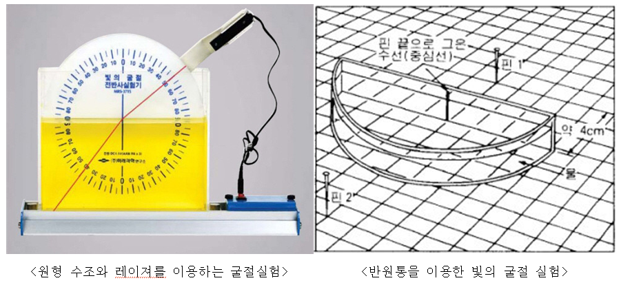 1. 원형 수조와 레이저를 이용하는 굴절 실험