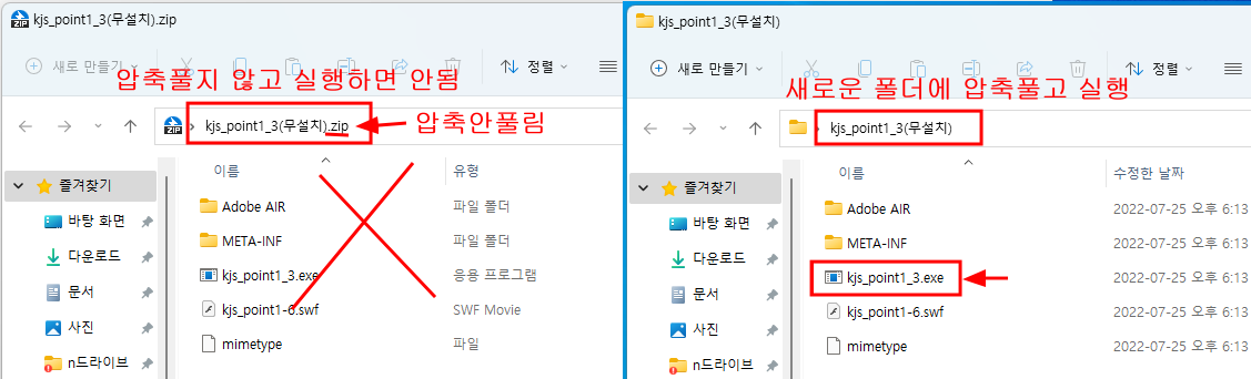 다운로드 해서 압축을 새 폴더에 풀고 kjs_point3_1.exe 를 실행 시키시면 됩니다.