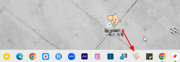 필자는 만들어진 바로가기를 작업표시줄에 끌어다 놓고 사용학 있다. 언제든지 작업표시줄에 있는 손가락 아이콘만 누르면 바로 실행된다. 작업표시줄에 끌어다 놓았으면, 바탕화면에 있는 손가락 바로가기는 지워도 된다.