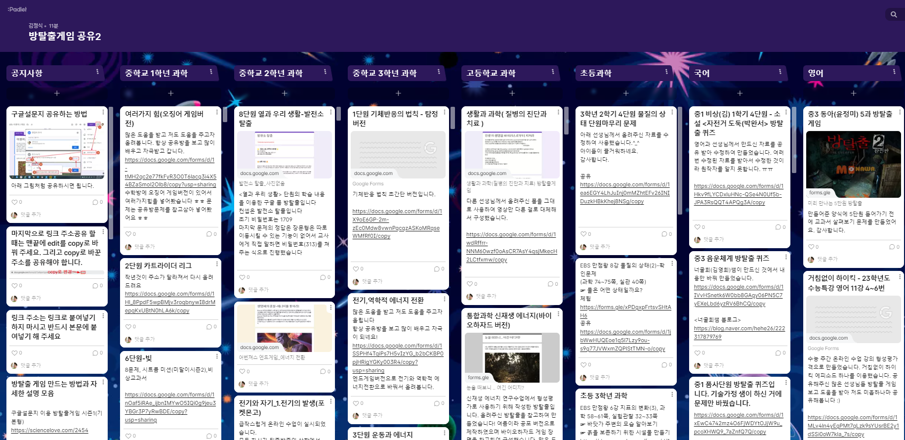 (처음에는 과학샘들의 공유방으로 시작했는데, 전교과 공유방으로 바꾸었습니다.)