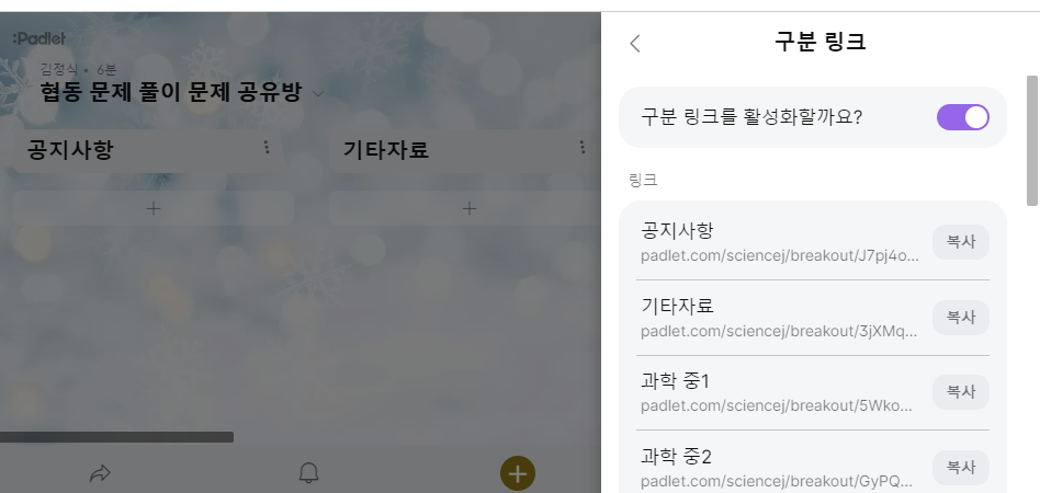 패들렛에 섹션 제목을 여러개 만들면 구분링크 활성화 기능이 추가 되었다.