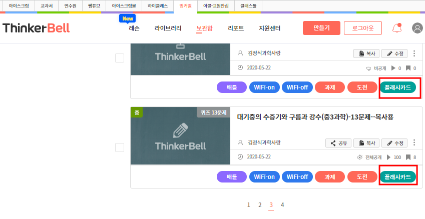 2. 띵커벨 퀴즈에서 플래시카드 기능을 이용하면 학생들이 퀴즈를 풀기전에 스스로 공부학 할 수 있다. - 일종의 단어장이라고 생각하면 된다.