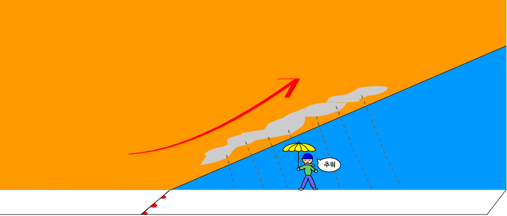 (전선은 성질이 다른 공기가 만나는 지면이라고 했던거 기억나지, 선생님이 바닥에 표시도 해 놓았어. ^^)
