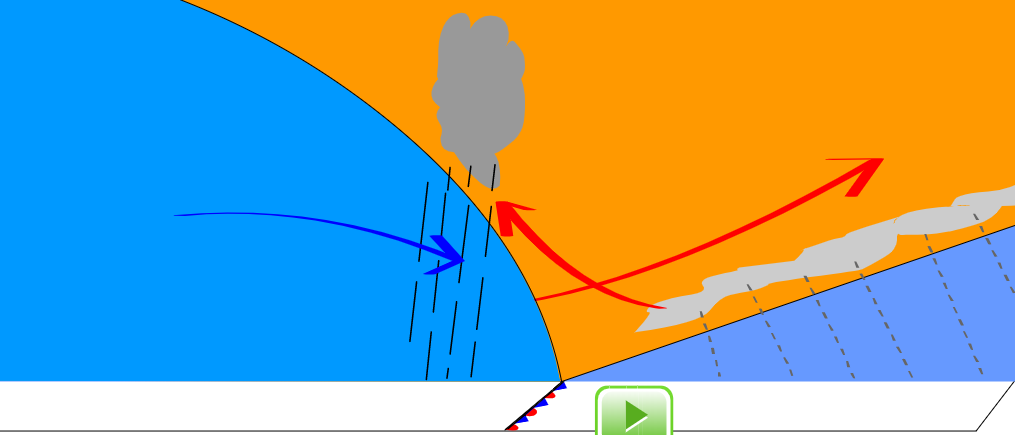 잘 이해가 안되면 그림을 살펴보고, 가상실험에 가서 온난전선을 직접 실행시켜 봐.