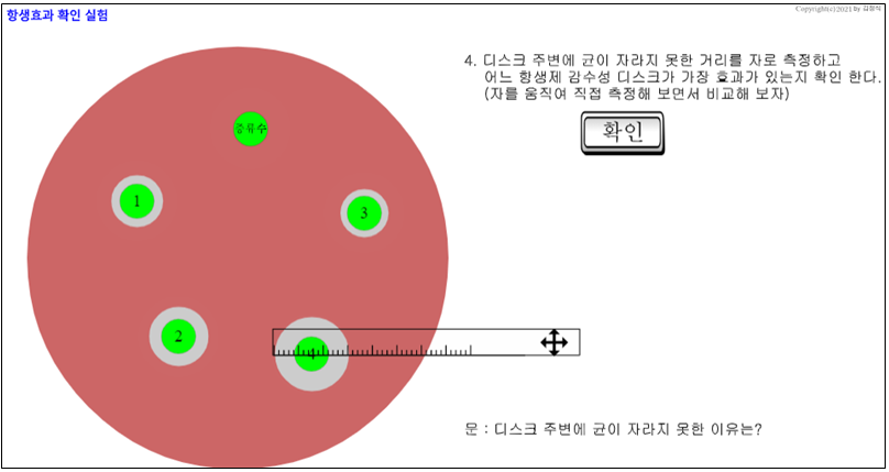 과학탐구실험에 나오는 천연 항생 물질 찾기 가상실험이다. 비대면으로 진행하다 보니, 가상으로 라도 실험방법을 알게 하고 싶었다.