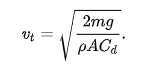 여기에서는 속력이 충분히 빠르지 않다고 가정하고 이상적인 경우를 가정하면 아래와 같은 종단속도를 구해낼 수 있다.