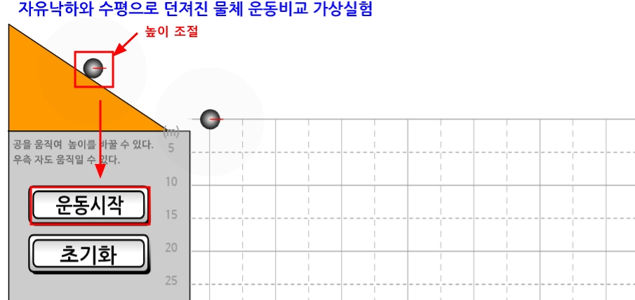 자유낙하와 수평으로 던져진 물체 운동 비교 가상실험