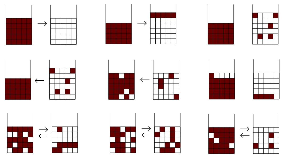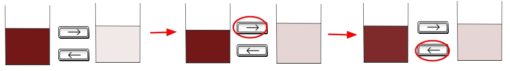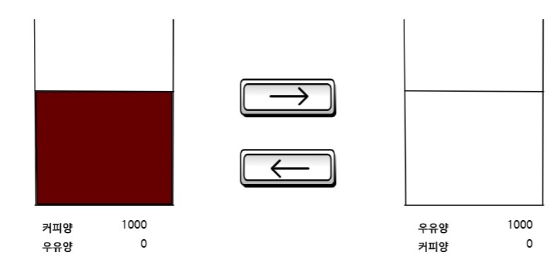 마지막 줄은 다양한 경우를 보여주고 있다. 중요한 것은 왼쪽과 오른쪽 컵의 양이 같다면 안에 섞여 들어간 커피의 양이나 우유의 양은 같을 수 밖에 없다는 것이다.