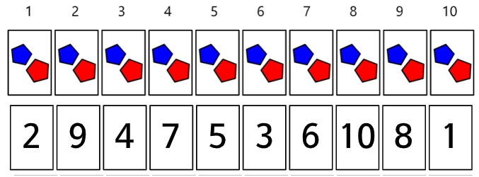 1-10까지 숫자가 적힌 카드 10장이 한줄로 책상에 놓여있는 방이 있다.
